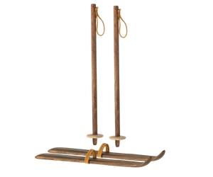 The perfect winter activity in the snow. With this set your mice can have a lovely day on the slopes. Ski and poles are made in wood and the elastic band makes it easy to fasten on mouse feet and paws. Fits Mum and Dad size mice.