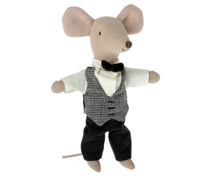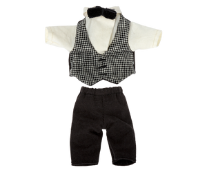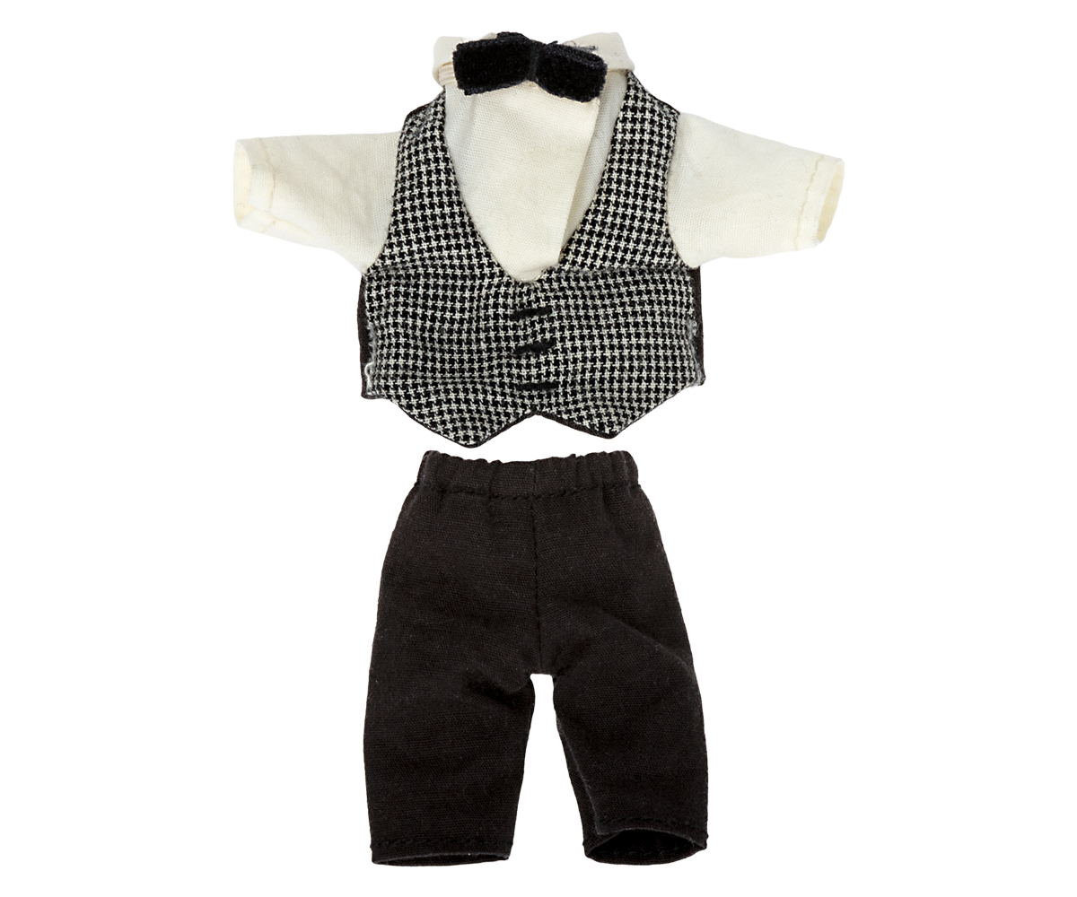 This set of Waiter Clothes is perfect for Big Brother or Sister mouse to serve up tasty treats. It includes black trousers, a white collared shirt, a patterned vest and a sweet bow tie. Whether they’re serving a royal banquet or simply playing dress up, they’ll look the part.