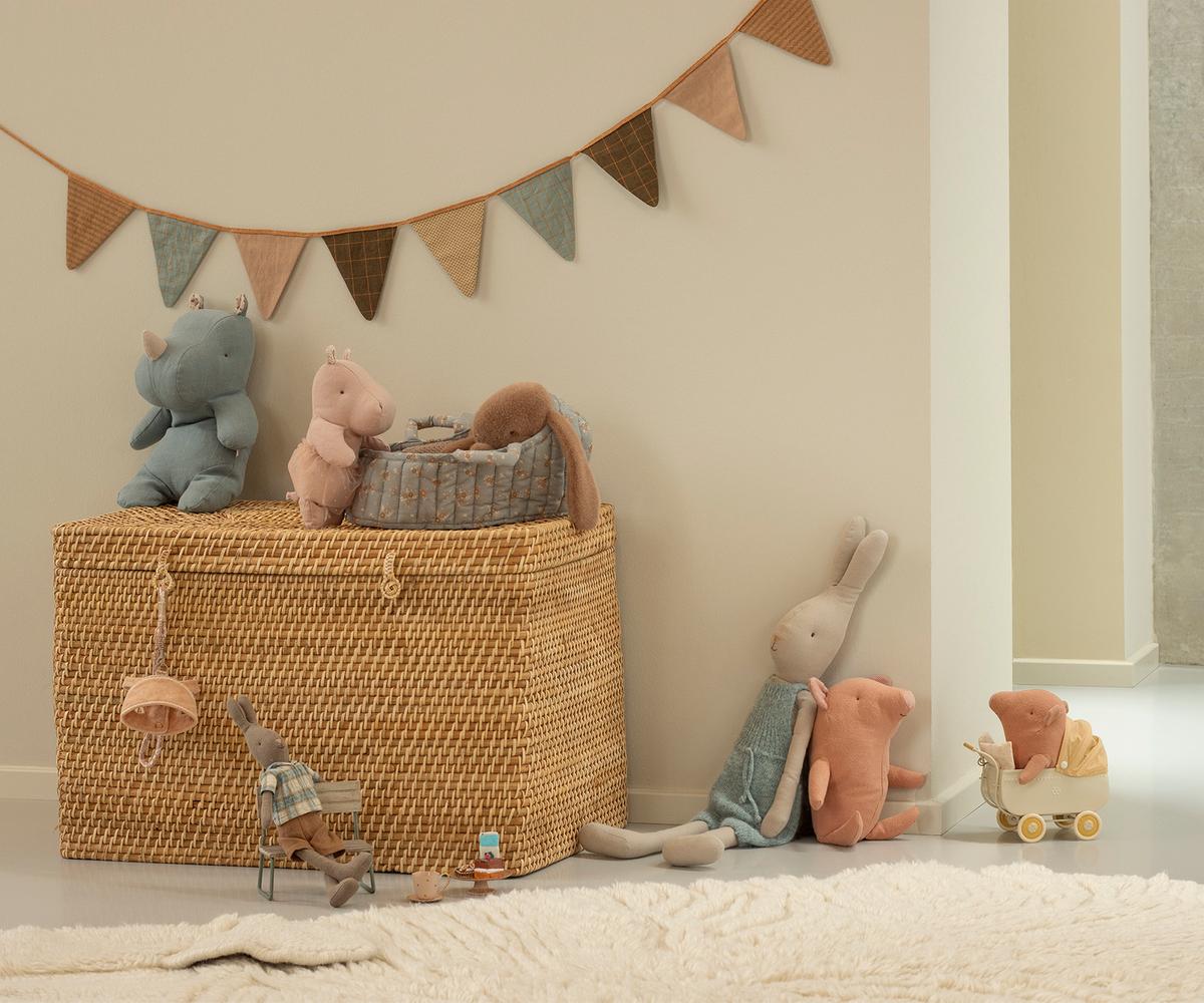 A true Maileg classic item. Truffles is an adorably pudgy pig who can sit straight up because of the beans in its bottom. Truffles have short arms and a curly little tail. You can find this soft pig in three sizes.