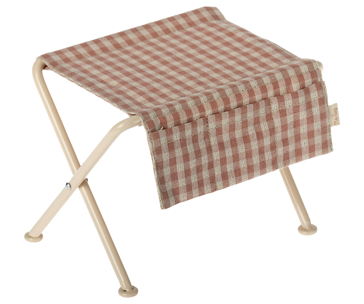 This nursery changing table is the perfect little space for micro-sized bunnies and rabbits. It features sturdy metal folding legs for easy setup and storage, and checkered fabric with a practical side pocket. Soft, functional, and full of charm, it makes every moment in the House of Miniature a sweet family experience.