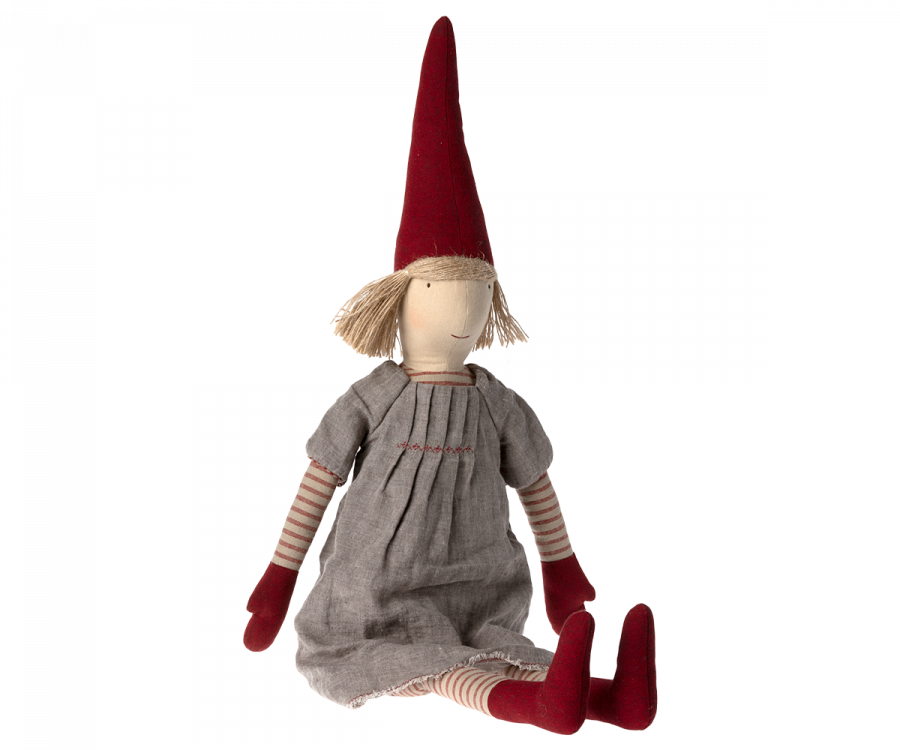 Pixy girl size 5. Dressed up in beautiful Christmas clothes made of exclusive materials. She is adorable in any Christmas decoration and can be mixed and matched with other sizes and collections.