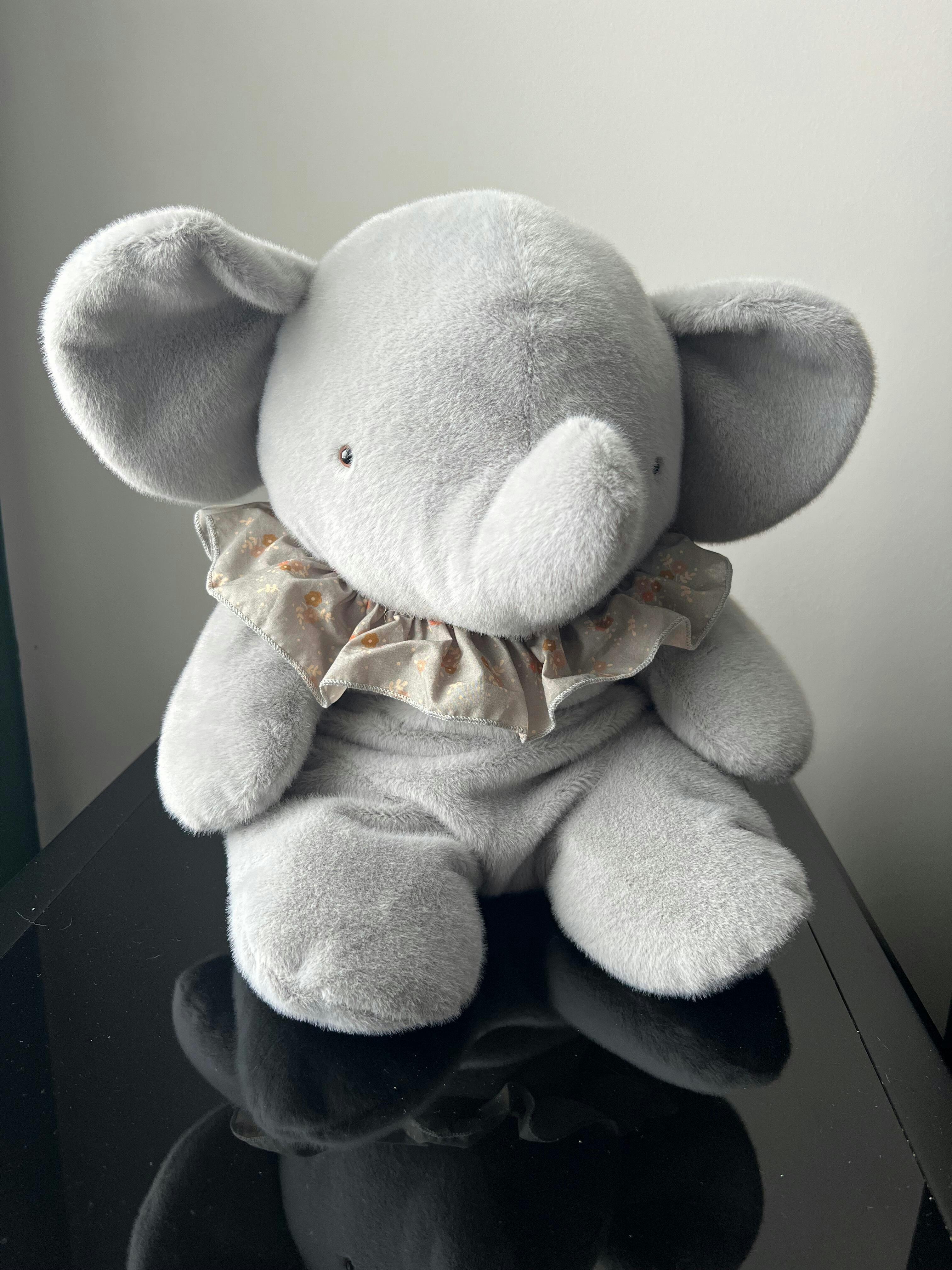 This is truly the most beautiful, well-crafted, and precious elephant I’ve come across! The material is incredibly soft, and the body, though perfectly floppy, is still stuffed enough for the elephant to sit (slouched in a cute way) on its own. The ruffle fabric around the neck is also very soft, not stiff at all. I was so pleased to see it arrive in a box rather than smushed into a poly bag like most other plush brands. The elephant’s shape remained intact during travel, which I think shows that Maileg truly cares about the little details. I have a few other small plushies from the brand, and the quality across all of them has been consistently wonderful.