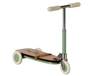 As all things Maileg, this little kick board is adorable, and appears very well made. There is one problem with it, however. Although the foot strap certainly helps to hold the mice in place, whatever material the hand grips are made from prevents the magnets in the mice hands from holding on very well - resulting in a less safe riding experience for the mice. ;)