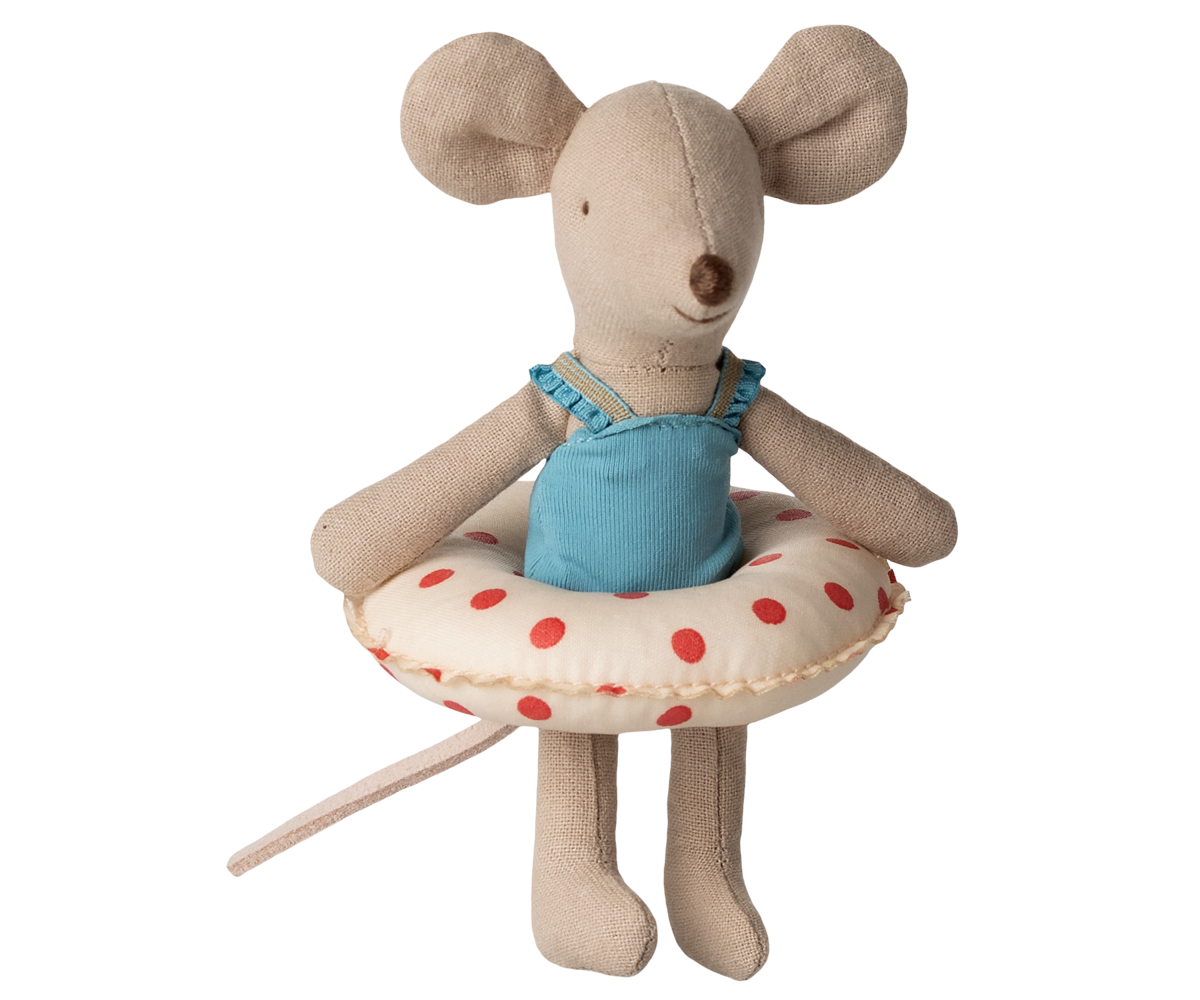 The playscene is set with this sweet beach mouse in her swimsuit and float. She is ready for a day at the beach or in the garden swimming pool - only your imagination will be the limit.