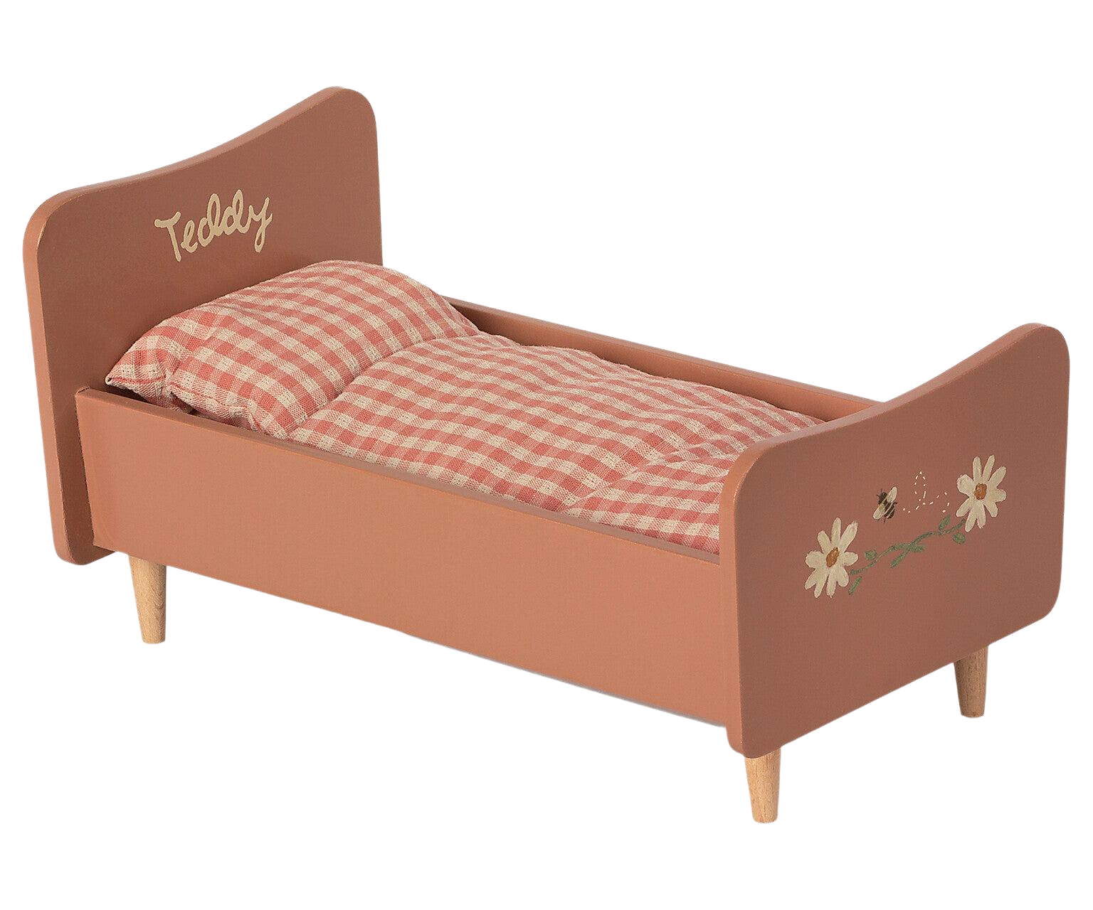 After a busy day caring for her little ones, Teddy Mum is ready to curl up and rest. Featuring a snuggly blanket, pillow, and hand-painted details on the headboard and footboard, this wooden bed is the perfect spot for Teddy Mum to drift to sleep.