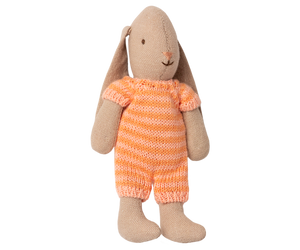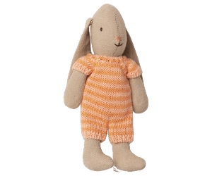 This sweet bunny in micro size is dressed in a striped suit knitted in a soft linen/cotton blend. It fits all the micro size furniture and will surely lead to many hours of play! The knitted suit is made in 3 lovely color combinations.