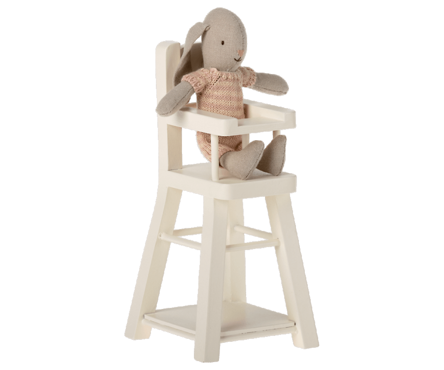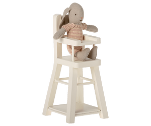 Mealtime is more fun with your Micro-sized Maileg friends. This wooden High Chair is designed to fit all micro bunnies and rabbits, as well as Big and Little Sister and Brother Mice.