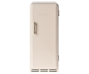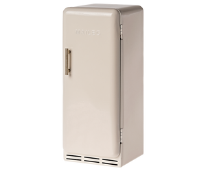A vintage fridge that fits perfectly into the House of Miniature dollhouse. The fridge is made of metal with a magnetic closure and frosted shelves inside. Our miniature grocery box and our crate of fruit and veggies are great additions to this fridge.