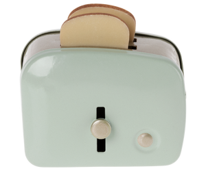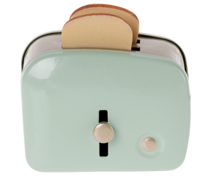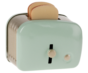 Start your day in the dollhouse with a delicious, toasted slice of bread. This metal toaster is a must-have for any busy kitchen and comes with 2 slices of bread that fit perfectly inside. Whether your friend prefers jam, honey, or just a bit of butter, breakfast always feels special when it begins with a golden piece of toast.