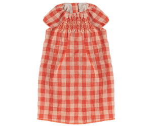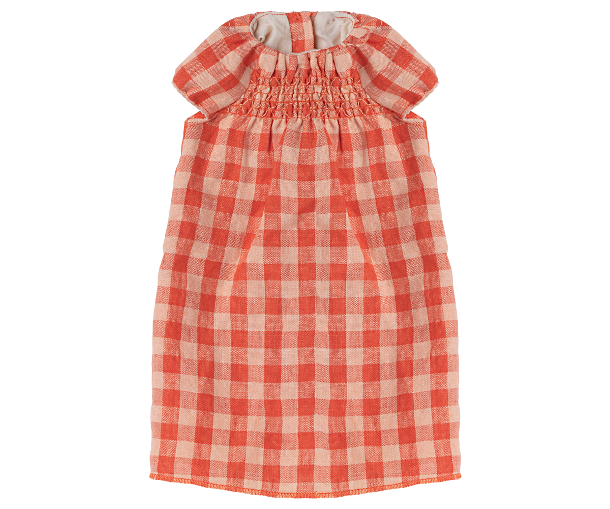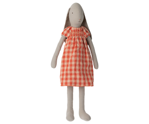 A lovely outfit for your Maileg rabbit or bunny in size 5. Dress-up your friend for imaginative adventures in this adorable plaid red dress.
