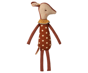 Our Bambi is fast asleep on one side, while the other side is awake and ready for playtime. Enjoy the sweetness of putting your friend to sleep and waking them up again. Bambi makes bedtime and playtime magical and gives the softest hugs and cuddles. This sweet friend also makes a wonderful sleep companion.